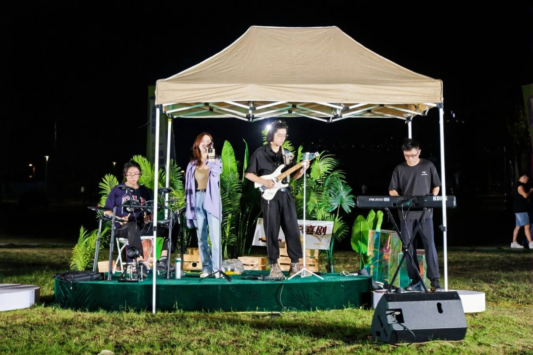 夜幕降临时,公园草地上支起的一顶顶帐篷亮起点点灯光,主舞台区民乐、爵士、流行舞蹈等多个领域的现场演出轮番上阵,美食、文创摊位集中亮相。