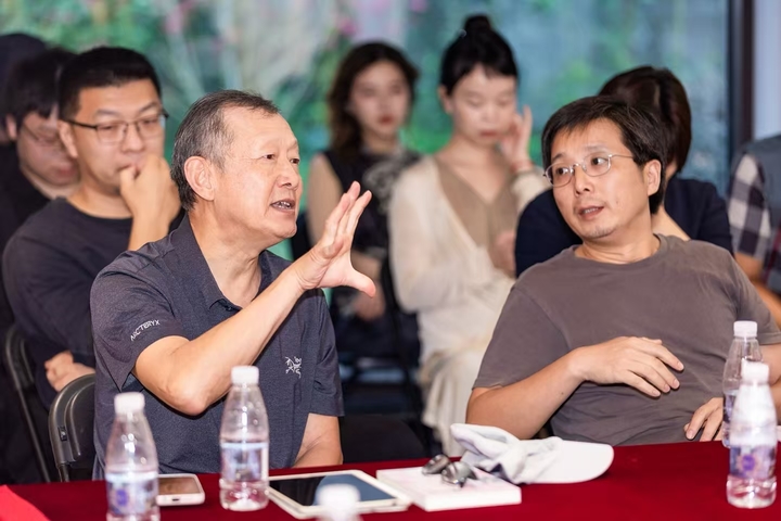 展览交流会由江苏省油画雕塑院院长孙俊先生主持,现场群贤毕至,高朋满座。出席嘉宾汇集了艺术创作、设计、产业及收藏等多个领域的杰出代表,包括:江苏省室内设计师协会会长管雪松、李伟,秘书长吕元,项目总顾问陈卫新,著名平面设计师赵宝伟,著名风景园林设计师陈凌航,著名酒店设计师孙威,数字艺术设计师赵博文、朱晨昕,艺术品收藏家高贞与袁铭,以及光陶社顾力等,可谓星光熠熠,体现了跨领域对此次艺术活动的共同关注。