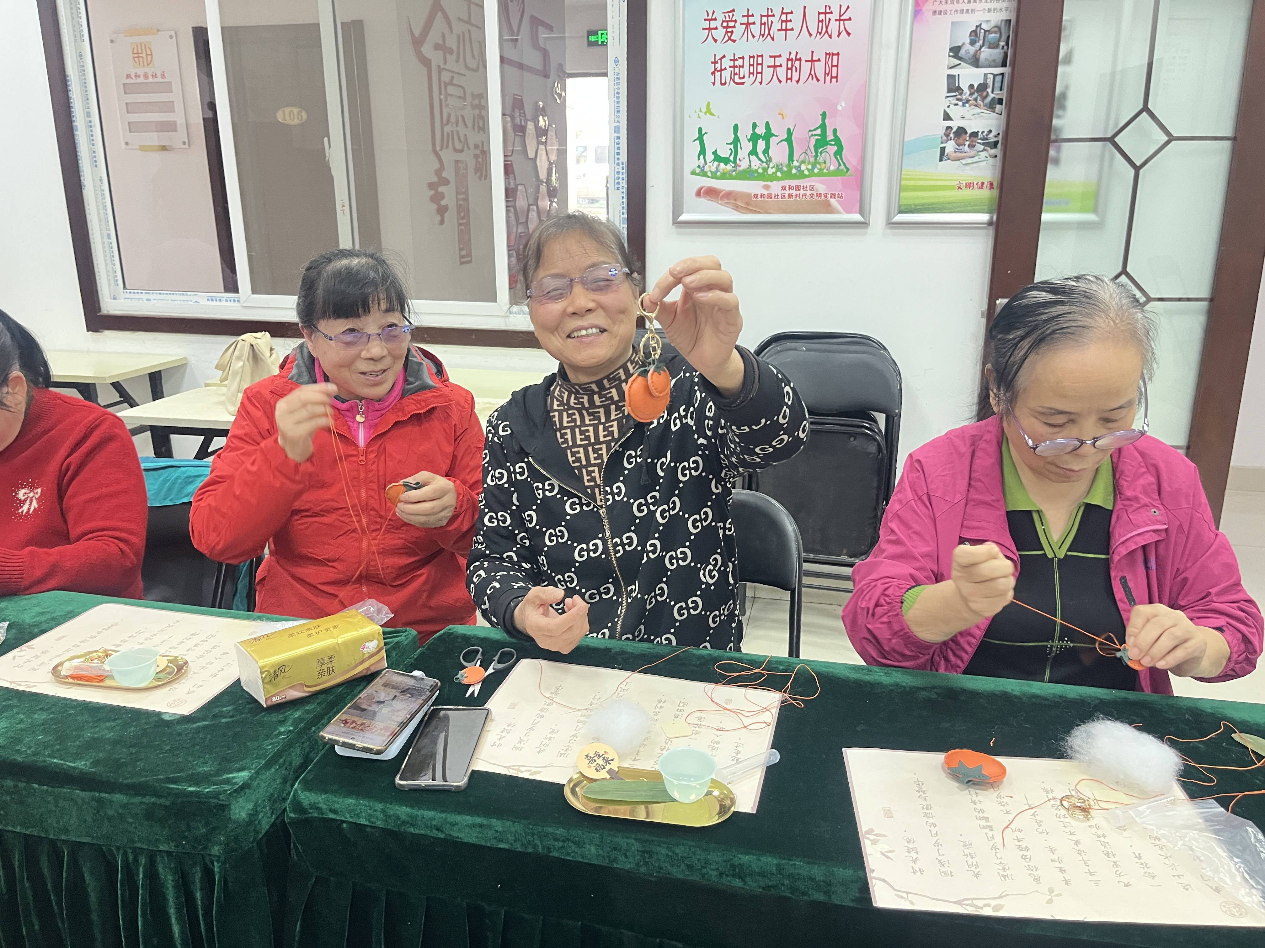 活动的重头戏——“柿柿”如意皮具钥匙扣制作环节,让居民们亲自动手,体验传统工艺的魅力。在尤老师的指导下,大家小心翼翼地裁剪皮具、粘贴装饰,制作出了一个个精美可爱的“柿柿”如意皮具钥匙扣。这些钥匙扣不仅寓意着吉祥如意,更成为了居民们手中独一无二的艺术品。