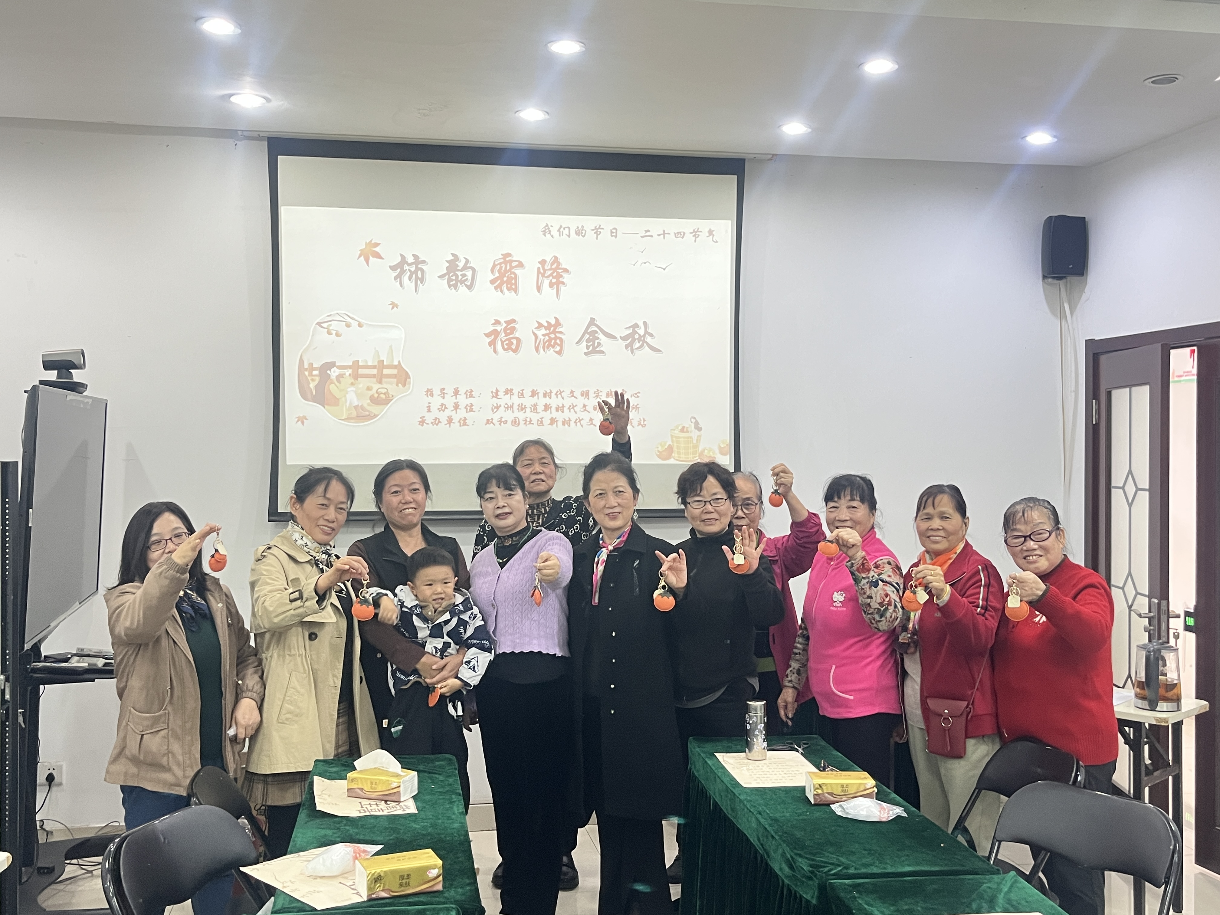 江南时报讯 近日,南京市建邺区沙洲街道双和园社区成功举办了一场别开生面的“柿韵霜降·福满金秋”霜降节气主题活动,吸引了社区内中老年居民的热情参与。本次活动响应南京市“茉莉花开”文艺直通车的号召,旨在通过节气文化科普、养生知识分享及手作体验,丰富社区中老年人的精神文化生活,实现“老有所学、老有所乐”的社区养老目标。