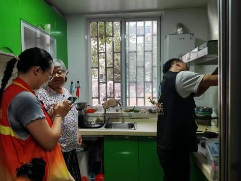 服务实施过程中,民服站严格组建“专业技师+社工/社区工作人员”专项服务小组,携带专用清洗工具与消毒用品,分批次上门服务。工作人员首先对家电安全状况进行评估,随后按照规范流程对空调和油烟机过滤网等关键部位进行深度清洗与消毒,并同步做好清洁后的部件归位与现场整理。期间,随行社工还结合夏季安全需求,向服务对象讲解家电日常保养、防暑降温等知识。