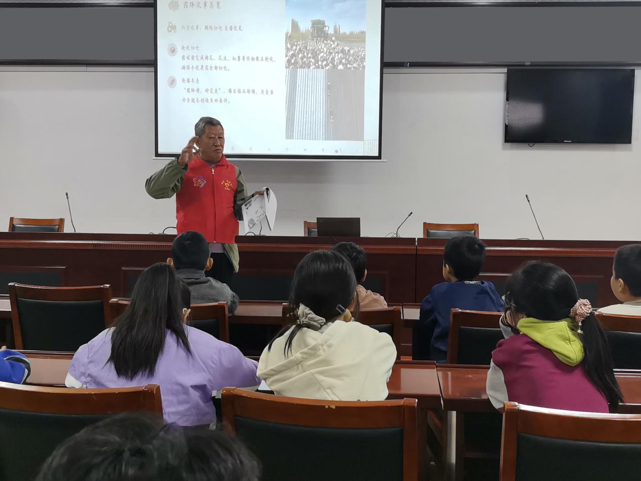 “霜降一到,咱们的土地和农民们可就忙开啦!”紧接着,邱爷爷又将一幅生动的农忙画卷在孩子们面前徐徐展开。他从“霜降见霜,米谷满仓”这句充满智慧的农谚说起,深入浅出地讲述了此时节北方抢收红薯、南方晚稻入仓的繁忙景象,并科普了为何“霜打过的白菜格外甜”的科学道理。此外,邱爷爷还分享了霜降时节吃柿子、登高远眺、赏菊等传统民俗。他朴实而充满智慧的讲述,不仅传递了知识,更让孩子们深刻体会到,二十四节气不仅是先辈留下的古老历法,更是一本指导耕耘播种、充满生命力的“大地说明书”,凝聚着中华民族顺应天时、勤恳劳作的生活哲学。