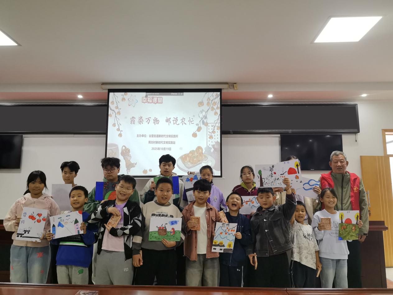 秋暮露成霜,恰逢农事忙。为传承中华优秀传统文化,让青少年亲身感受二十四节气的独特魅力,近日,一场别开生面的“幸福课堂”——“霜染万物 邮说农忙”青少年主题活动在荆刘村火热举行。村“五老”志愿者们精心策划,带领孩子们通过“听、学、画”的沉浸式体验,共赴一场与深秋的约会。