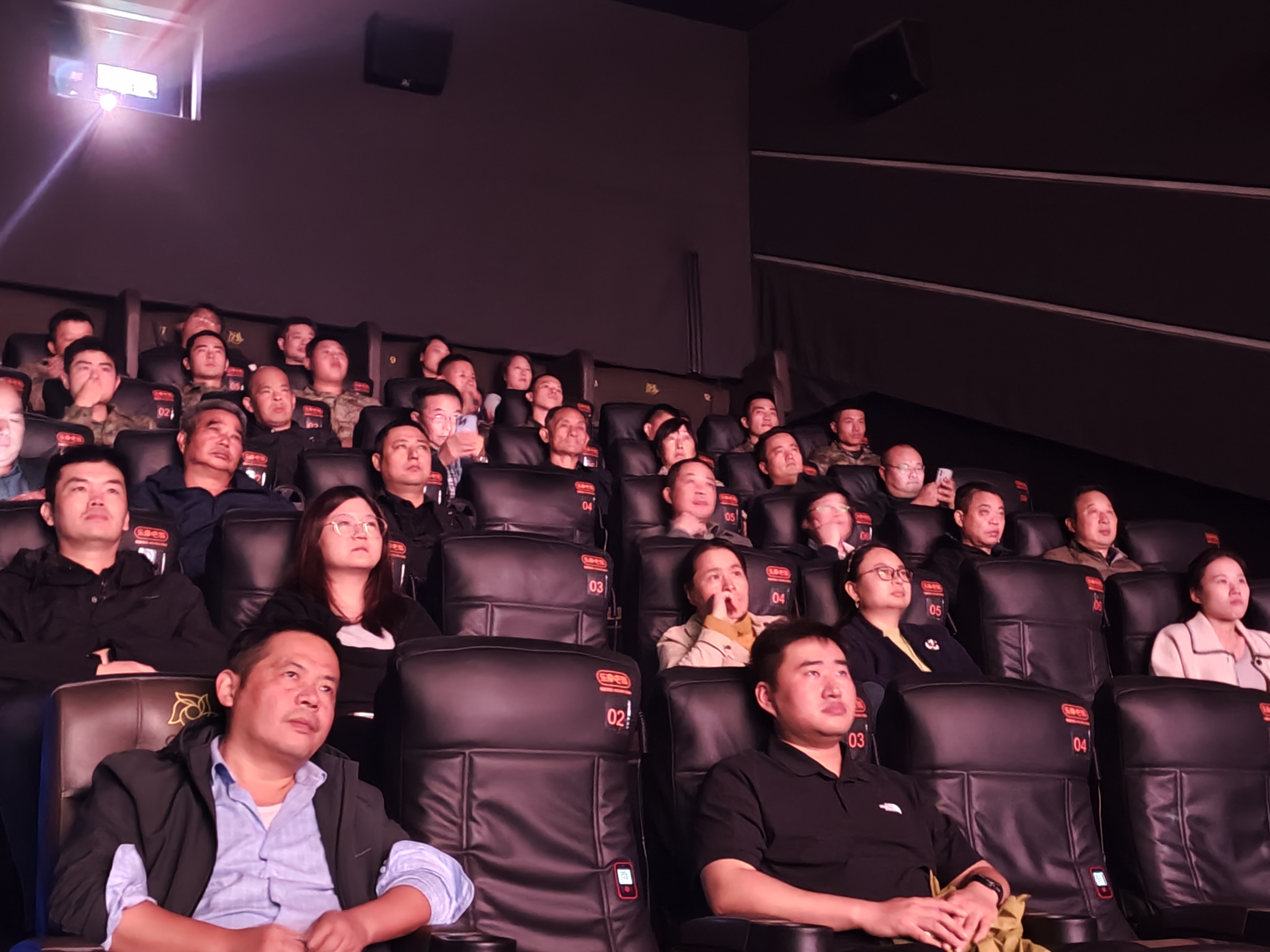 坐在同一排的毛岸生,他虽未亲历战场,但他明白革命军人赤诚为国血洒疆场的豪迈与壮烈。作为南京最美退役军人,他全程紧握双拳,目光紧紧锁定银幕,他也曾是电力战线的英模代表,完美诠释军人本色处处都能激扬斗志、成就事业。当黄继光带着满身伤痕,一次又一次挣扎着起身,用身体堵住敌人枪眼的瞬间,毛岸生的肩膀微微颤抖,滚烫的泪水夺眶而出,他快速以袖掩面,将眼神望向屏幕上方,短暂停留后又回神前方。“为了‘孩童’般的和平事业,志愿军战士们舍生忘死,用意志力突破了人类极限,他们是真正的英雄!” 他转头看向尹光新,两位老兵的目光在泪光中交汇,无需言语,便读懂了彼此心中对英烈的崇敬、对和平的珍视 —— 这正是 “英雄惜英雄” 的深刻共鸣。