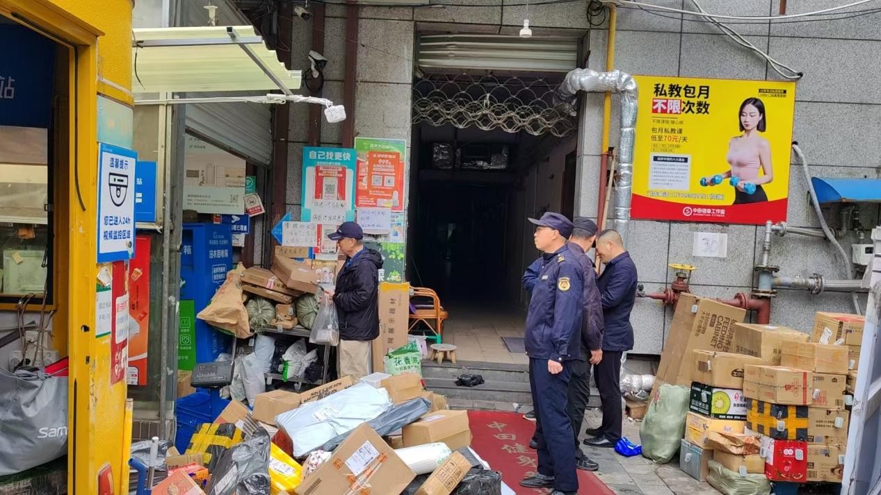 在执法过程中,执法人员不仅指出占道行为的违法性,还主动提醒店铺负责人:露天堆放的快递易受日晒雨淋导致物品损毁,且无人看管存在被盗风险,可能引发消费者投诉。通过“执法+风险提示”的双重引导,帮助负责人认识到规范存放不仅是遵守法规的要求,更是保障自身服务质量、减少经营损失的必要举措。也通过“以案释法”的方式,向周边商户、物流企业传递了“城市道路不得随意占用”的管理底线,有效遏制了同类破坏市容秩序的行为蔓延。