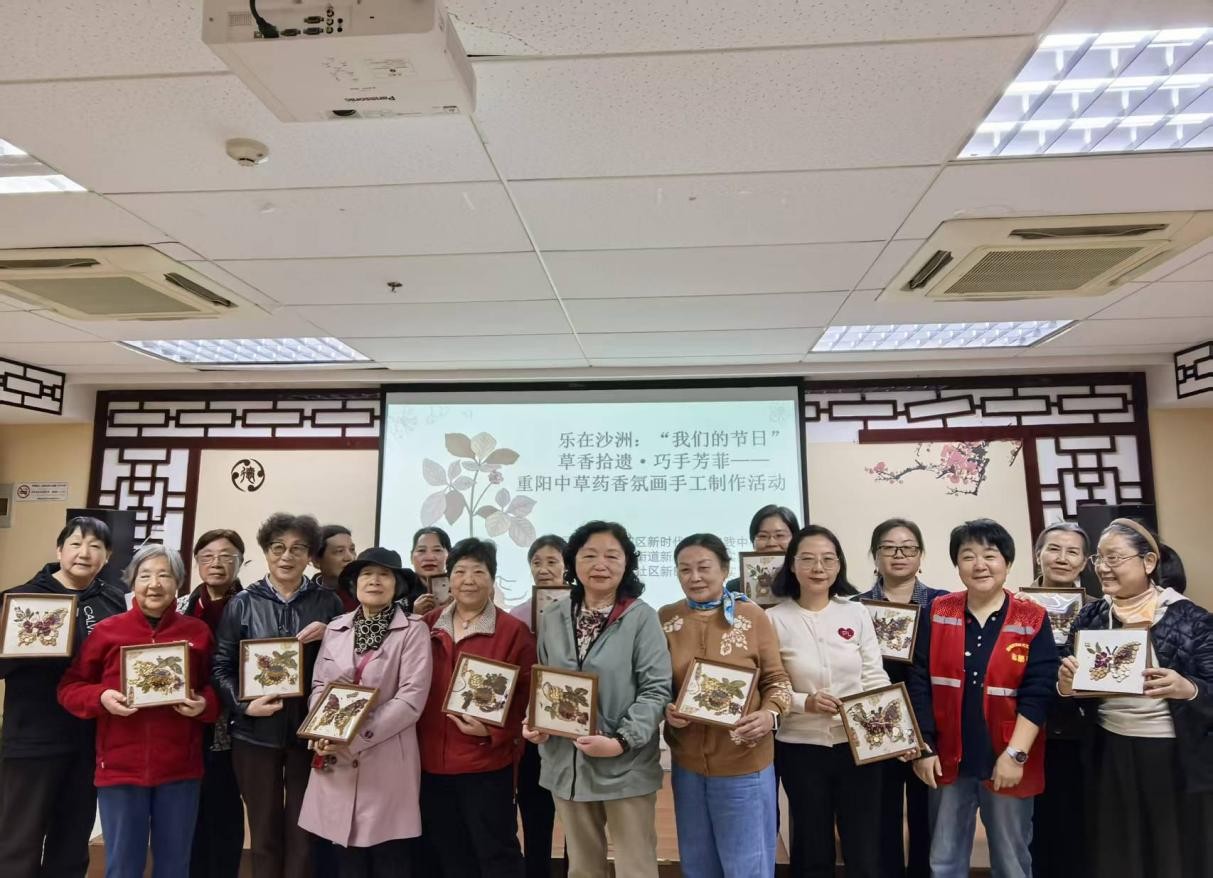 江南时报讯 金秋送爽,丹桂飘香,为弘扬中华民族尊老敬老的优秀传统美德,进一步倡导敬老、爱老、助老的新风尚,丰富辖区老年人精神文化生活,南京市建邺区沙洲街道中胜社区新时代文明实践站开展“我们的节日”草香拾遗•巧手芳菲——重阳中草药香氛画手工制作活动,吸引了辖区不少老年人踊跃参与。活动以传统中草药为载体,通过艺术创作与文化科普相结合的形式,为居民带来一场沉浸式的非遗文化体验。