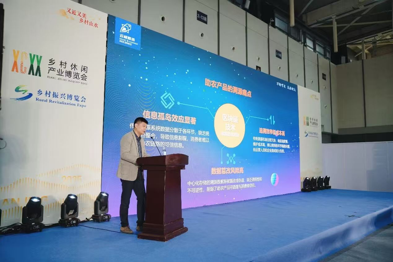 云极平台创始人李楠发表主题演讲。他介绍,云极正通过区块链技术打造农产品溯源和信用体系,推动原产地优质农品以“数字身份证”方式进入市场,实现从田间到餐桌的全链条可追溯。同时,他分享了原产地农品在社区私域渠道的创新销售模式,为助农产品的精准营销提供了新思路。会上,云极举行全国助农产品溯源系统上链首发仪式,并为镇江丹徒区世业洲四季春高效农业园、扬州水泊长山农业生态园等首批上链农品主理人颁发证书,标志着数字助农正式进入区块链时代。