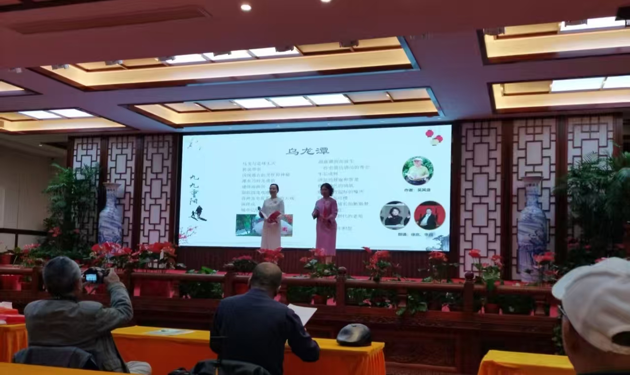 作为开篇首秀,本次诗会抓住重阳登高望远的由头,以关注寺庙重生,感怀人文历史及清凉文化为基本定位,在理海法师致辞后,首先推出了致敬前辈文人的“重阳清凉格律诗联句”,以林志雄、高淑珍为首的8位格律诗人和清凉寺理海、葛长森两人用每人两句接诵的方式,完成了与前辈诗人的文化和精神对接;接下来,诗会按“盛世重光”“今又重阳”“无上清凉”“石城怀想”四大分块,用ppT大屏展示配合现场朗诵、吟诵的方式,展现了29位新旧体诗人的每人一首作品。老诗人叶庆瑞、王德安、孙友田、吴野分别打开登高感亲情、抗战忆英烈、义工亮心灯的诗意话题,抒发了积聚于心的诗歌情怀;中生代诗人方政、杜立明、杨骥、张学庆、谌宁生、孙万江等则情追古今,用超然的生命体验和艺术审美,探寻了清凉山水孕育的丰厚文化内涵;青年诗人梧丹梦、张伟斌、赵雨希也展开丰富想象,通过不同视角观察、感知了一座青山带给自己的美学震颤……全部朗诵作品不仅涉及扫叶楼、银杏谷、还阳泉等知名景点,而且还包括清凉寺重建时不设围墙、建筑为生态让道以及整个风光带中乌龙潭、魏源故居等诗意看点。
