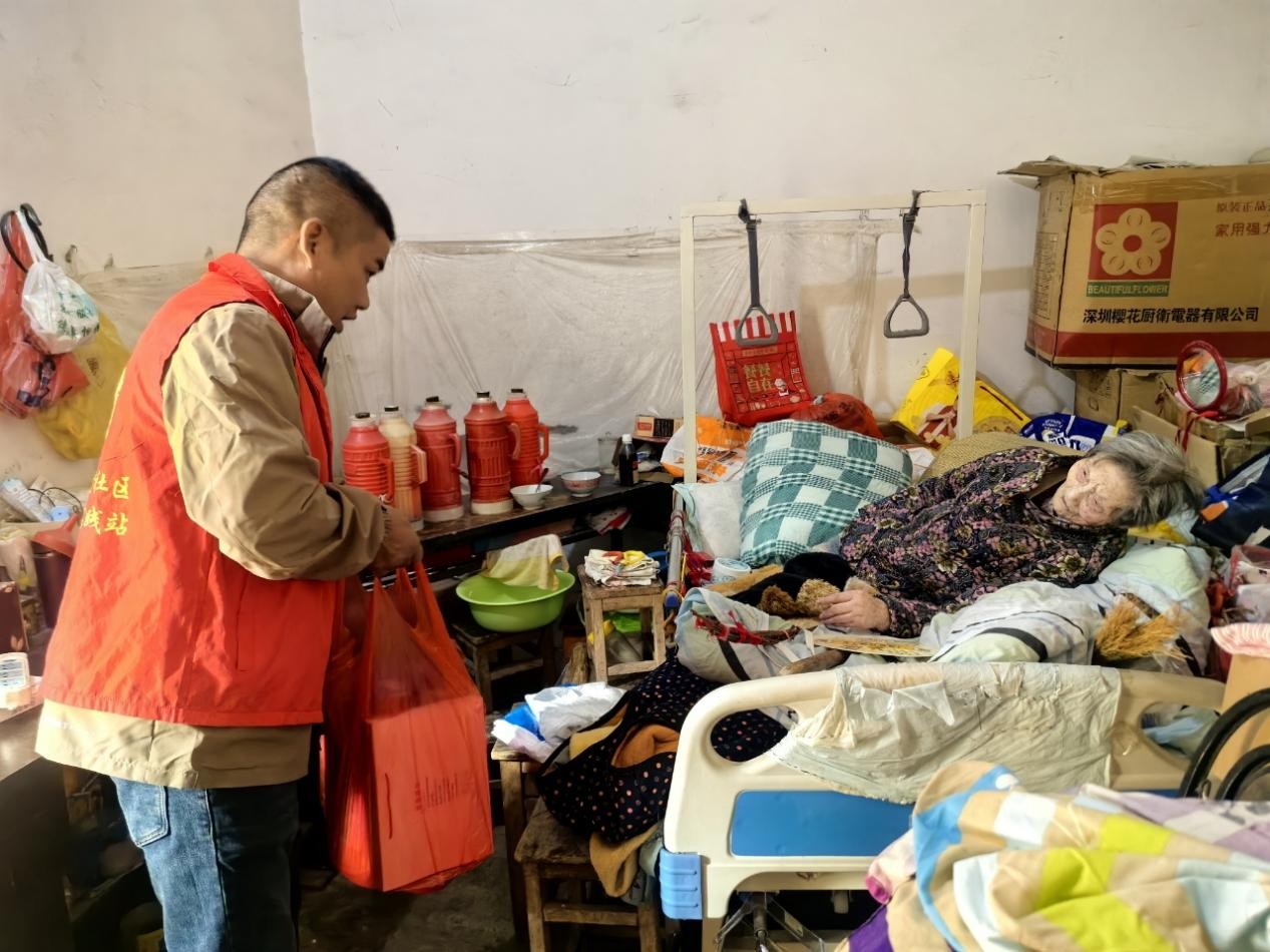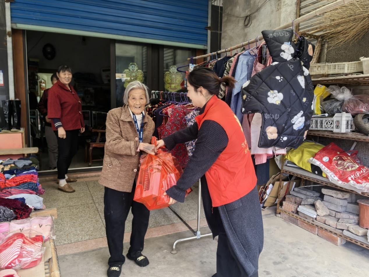 此外,社区还特别组织了对90岁以上高龄老人的慰问活动。志愿者们带着洗衣液、洗发水等生活用品,逐一上门看望这些高龄老人,与他们亲切交谈,了解他们生活中的困难和需求,并表示将尽力提供帮助。
