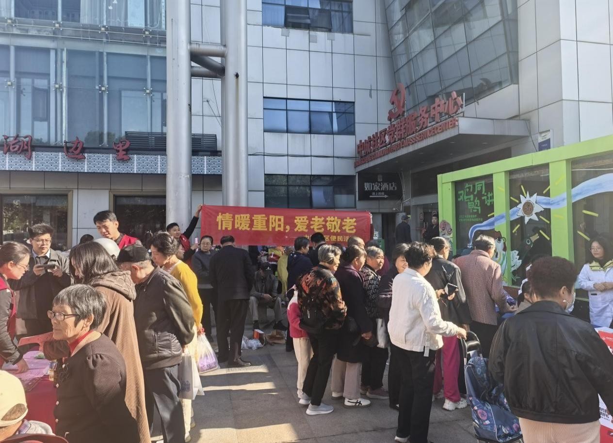 在便民生活方面,中城社区举办了一场以“情暖重阳、爱老敬老”为主题的大型社区便民服务活动。活动现场设置了多项贴近老年人日常生活的免费服务,包括磨刀、理发、血糖血压测量等,切实解决了老年居民的实际生活需求。同时,多家医疗机构为居民提供了专业的医疗健康咨询,各个银行则开展了金融知识普及宣传。