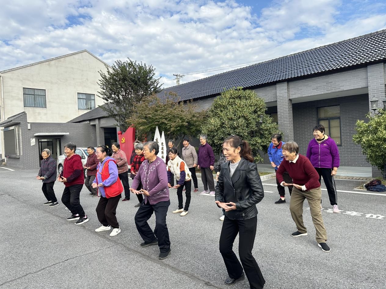 阳光正好,微风不燥,居民们排着整齐的队伍,在社工的带领下缓缓起势。“双脚与肩同宽,沉肩坠肘,吸气……”社工一边示范标准动作,一边用清晰的口令引导大家循序渐进练习,对动作不规范的居民逐一进行耐心指导,纠正站姿、手势等细节问题。现场氛围轻松愉悦,大家跟着节奏舒展肢体,一招一式虽略显生疏却格外认真,整齐的动作与轻柔的呼吸声交织在一起,构成了社区重阳节里一道温馨的风景线。
