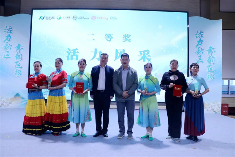 比赛间隙,歌手王漪献唱《灯火里的中国》,悠扬的歌声表达了对祖国繁荣昌盛的美好祝愿,将现场气氛推向高潮。经专业裁判组公正评审,最终评选出舞动巅峰奖1名、活力风采奖3名、韵律飞扬奖4名。