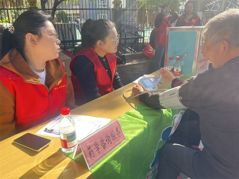 来自“精准助老”药事服务点(润天医药连锁药房)的药师们现场开展药学咨询服务,解答老人们关于慢性病用药的疑惑,并设置了过期药品回收箱,引导居民安全处理家中过期失效药品,同时还为社区老人带来“老年人家庭用药安全‘红绿灯’”的健康讲座,讲解药品知识、揭示用药误区,指导老人养成良好用药习惯,助力老年慢病的科学管理。