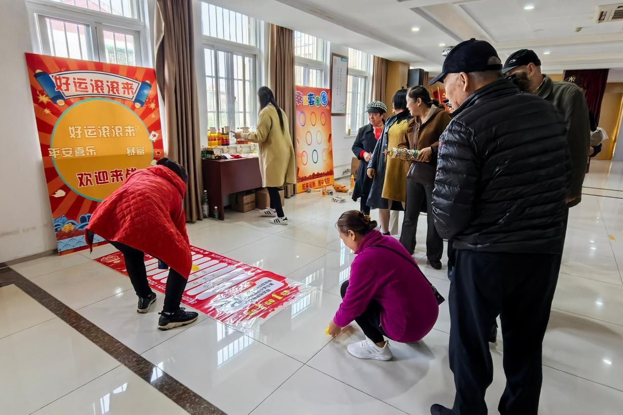 “非遗雅集区”弥漫着浓厚的传统文化气息。在“非遗拓印+相框制作”体验点,大家亲手拓印“松鹤延年”“福寿安康”等吉祥图案,细心装裱成独一无二的重阳纪念品。一旁的“中药艾草颈枕DIY”区域药香袅袅,老人们认真填充、缝合,在亲手制作中寄托对健康生活的美好祈愿。“游戏乐园区”则洋溢着欢声笑语。“欢乐套圈”让长者重拾童趣,每一次收获都引来阵阵喝彩;“开心滚滚乐”也别出心裁,滚动印有吉祥话的圆筒,赢取油盐酱醋等实用奖品,简单安全又趣味盎然。