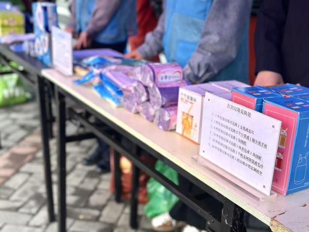 为进一步激励居民将分类知识转化为实际行动,现场还开展了有害垃圾有偿回收活动。居民可将家中过期药品、废旧灯管、充电电池等有害垃圾带到现场,兑换香皂、雨伞、环保袋等实用礼品,既实现了有害垃圾的安全收集,也提升了居民参与的获得感。