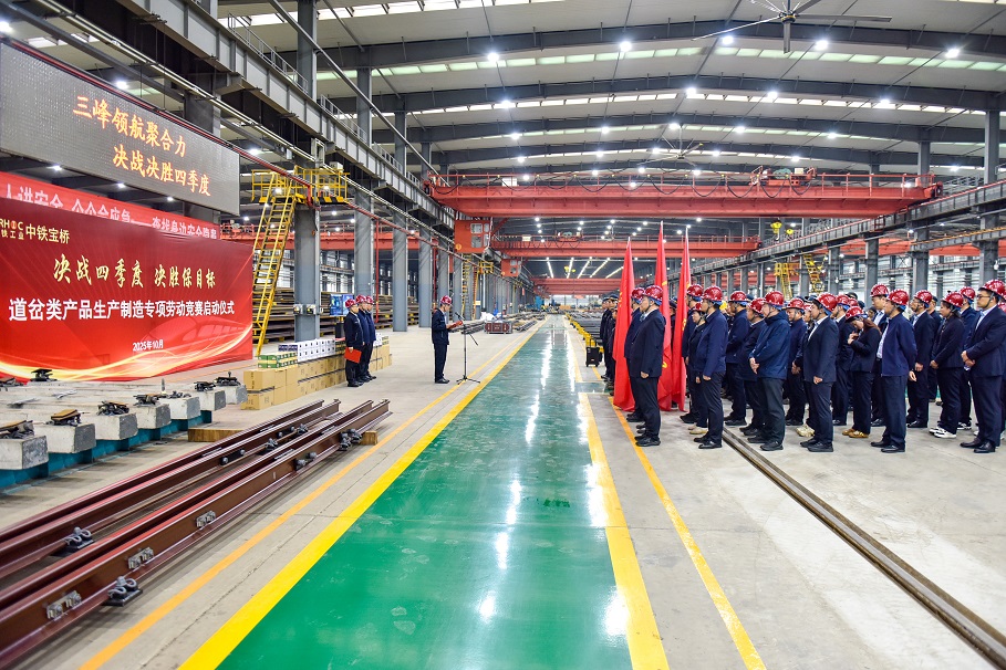 10月30日,位于南京经济技术开发区的中铁宝桥(南京)有限公司道岔联合厂房内,一场以“决战四季度 决胜保目标”为主题的专项劳动竞赛正式启动。数百名精神抖擞的产业工人代表齐聚一堂,展现出昂扬奋进的新时代风貌,吹响了服务区域经济、冲刺全年目标、推动高质量发展的攻坚冲锋号。