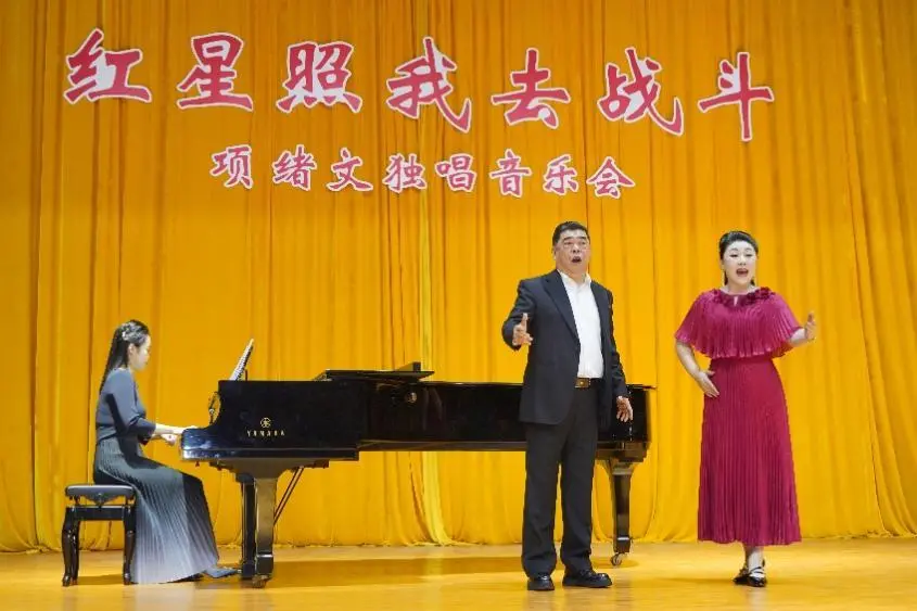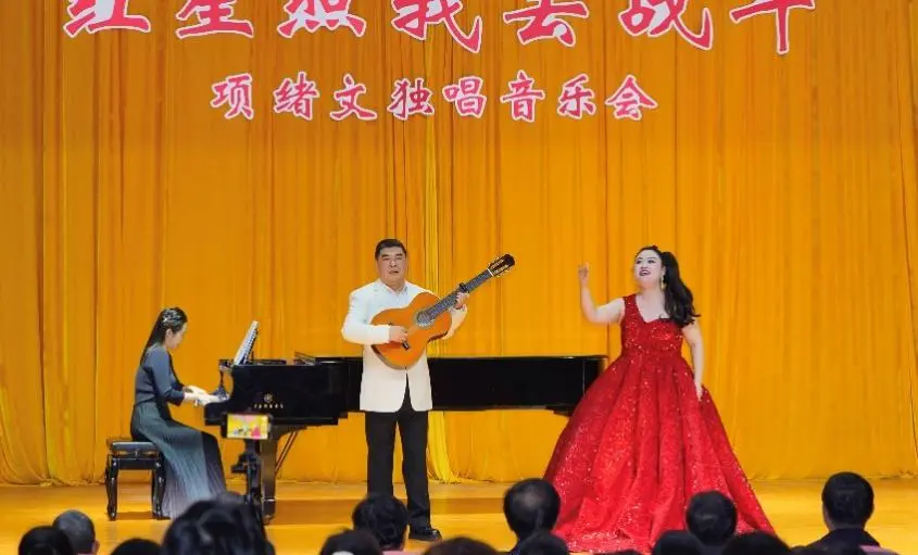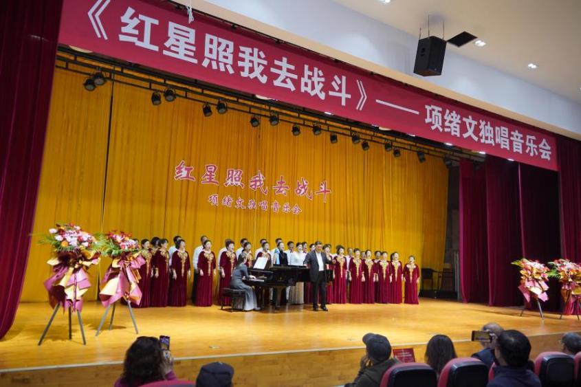 由南京师范大学中北学院音乐学院(以下简称“音乐学院”)主办,江苏省红色文化研究会、江苏青春老年大学参与协办的“红星照我去战斗——项绪文独唱音乐会”,全程无扩音设备,让观众体验声音本来的魅力。这也是项绪文又一次放弃音响话筒的挑战,以证明自己虽年近六旬,仍能以纯净之声诠释“原声”之美。