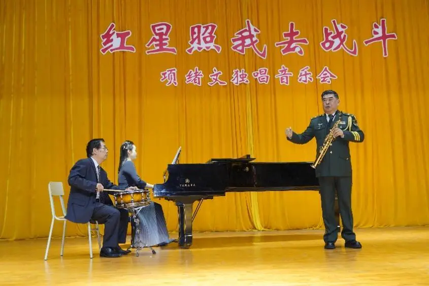 音乐会上,项绪文演唱的《红星照我去战斗》《拉着骆驼送军粮》《战士第二故乡》《打靶归来》等,激昂的旋律让人热血沸腾。