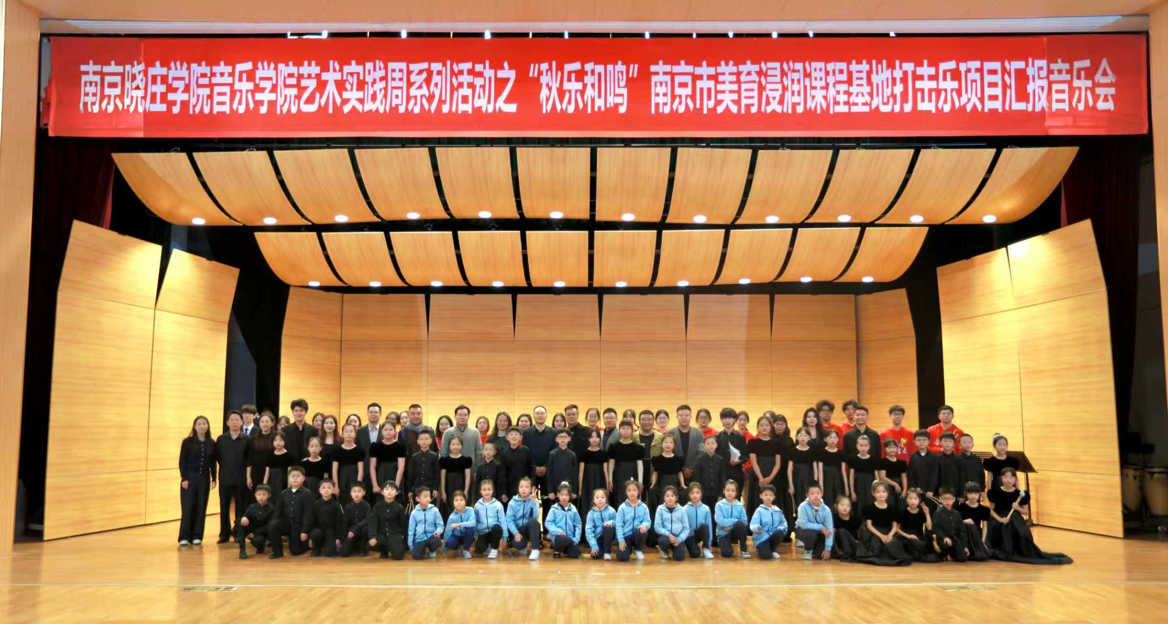 11月4日,南京市美育浸润(打击乐)课程基地的师生们走进南京晓庄学院,开展了一场别开生面的美育行动——“秋乐和鸣”打击乐专场音乐会。本次活动由南京晓庄学院音乐学院与南京市金陵中学实验小学联合举办,东南大学继续教育学院、江苏省戏剧学校、江苏省艺术培训促进会、南京市艺术小学、南京民族乐团作为支持单位。是高校优质资源赋能基础教育美育实践的一次生动展示,标志着南京市“大中小学美育一体化”实践迈向新台阶。