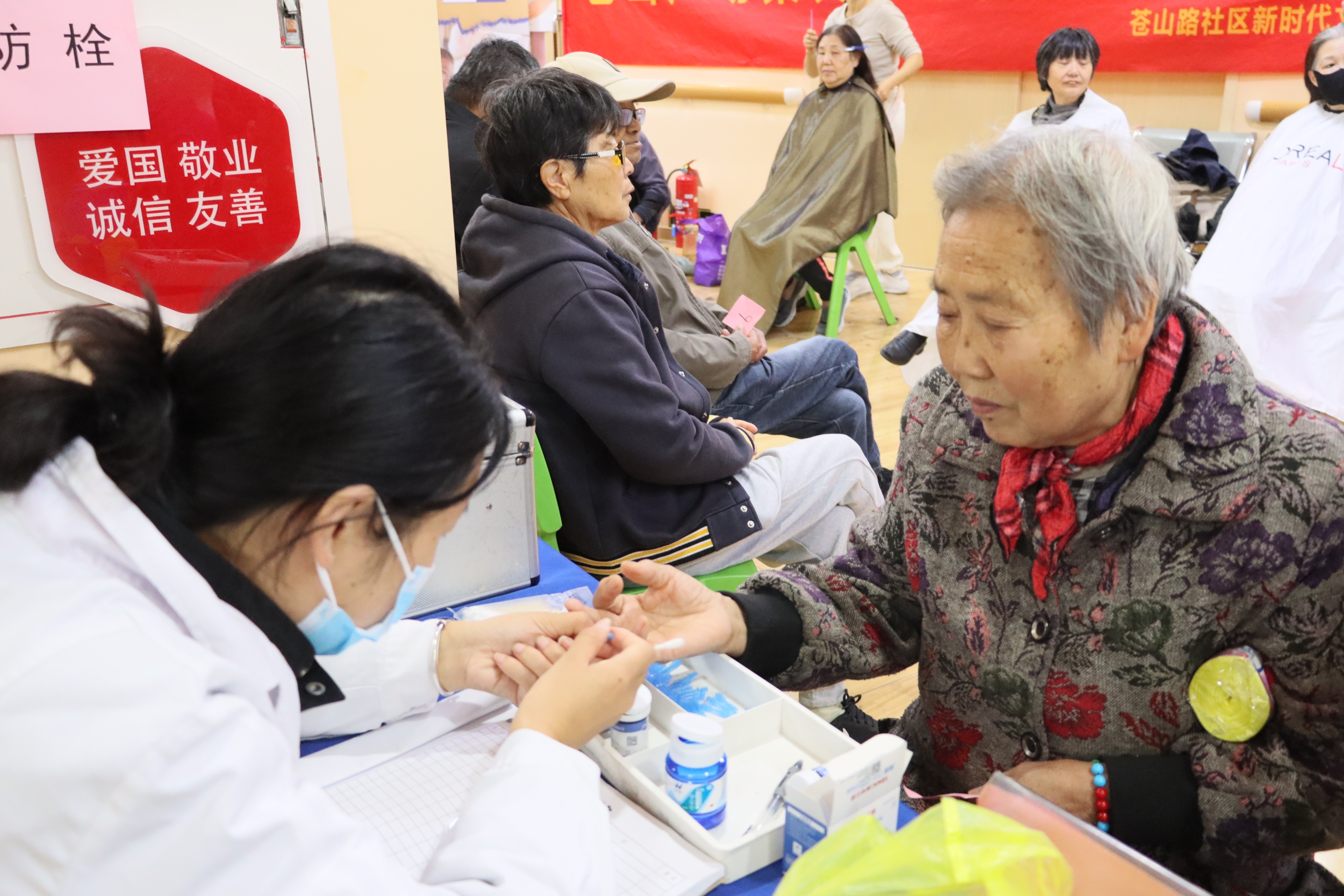 健康关怀暖心服务区域同样忙碌有序。医护人员认真地为居民测量血压、血糖,详细记录数据,并给予专业的健康建议。中医问诊台前,中医师通过望闻问切,为居民把脉,解答大家关于养生保健的疑问。健康咨询处,工作人员耐心倾听居民的健康困扰,提供个性化的健康指导,让居民们感受到了浓浓的关爱。