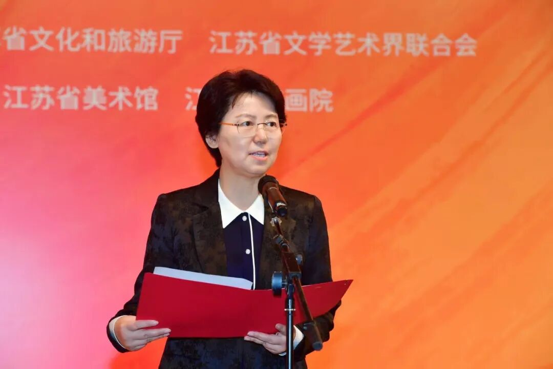中国美协分党组书记、驻会副主席屈健,省政协原副主席冯健亲,省委宣传部副部长徐宁,省文联党组书记、副主席常胜梅出席开幕式并为展览揭幕。省文联领导刘轩明、何超、黄俊、韩军,中国美协副主席、省美协主席陆庆龙,中国文联美术艺术中心展览处处长杜松儒,中国美协理论委员会主任尚辉,中国文联美术艺术中心展览处副处长孙宁,上海师大美术学院原院长、中国国家画院研究员俞晓夫,北京大学博雅特聘教授丁宁,以及北京、内蒙古、浙江、福建、山东、广东等省市美协代表,江苏省委宣传部、江苏省文旅厅相关负责同志,江苏省美协主席团及顾问代表等出席开幕式。开幕式由韩军主持。