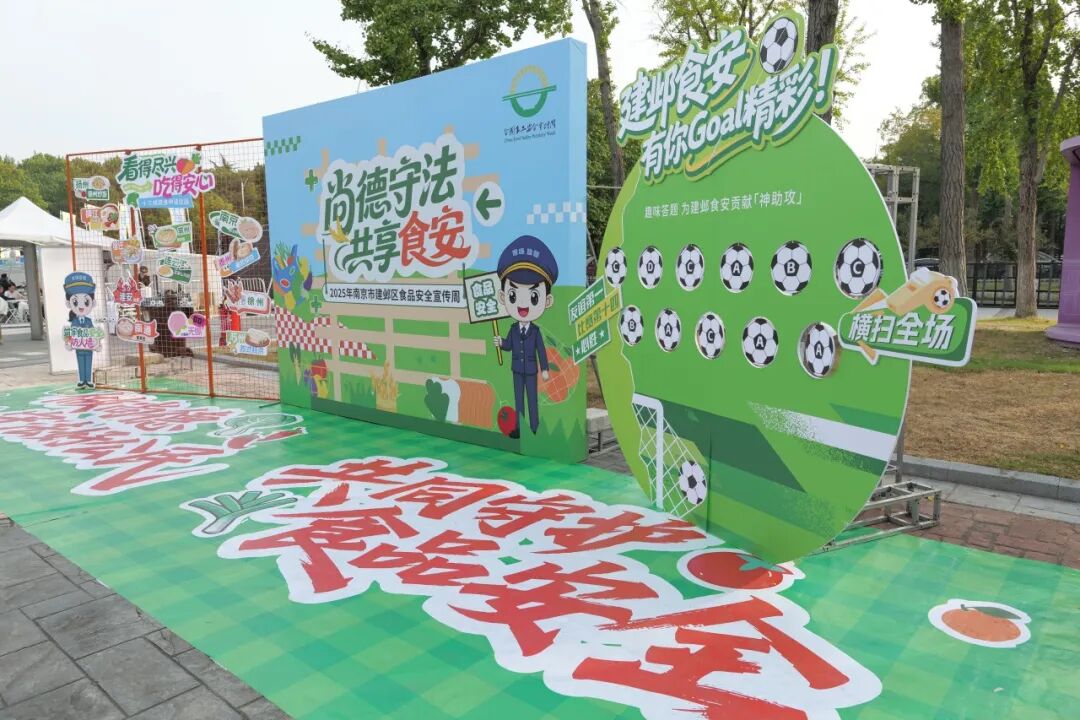 建邺区借“苏超”热度,决赛日当天,在银杏里街区设置投壶游戏、签名打卡、现场问答、助威加油等互动环节,将球迷观赛热情延伸至食品安全社会共治实践课堂;同时联动江苏“十三太保”美食文化IP打造主题花车,将“看得尽兴、吃得安心”理念融入宣传内容。