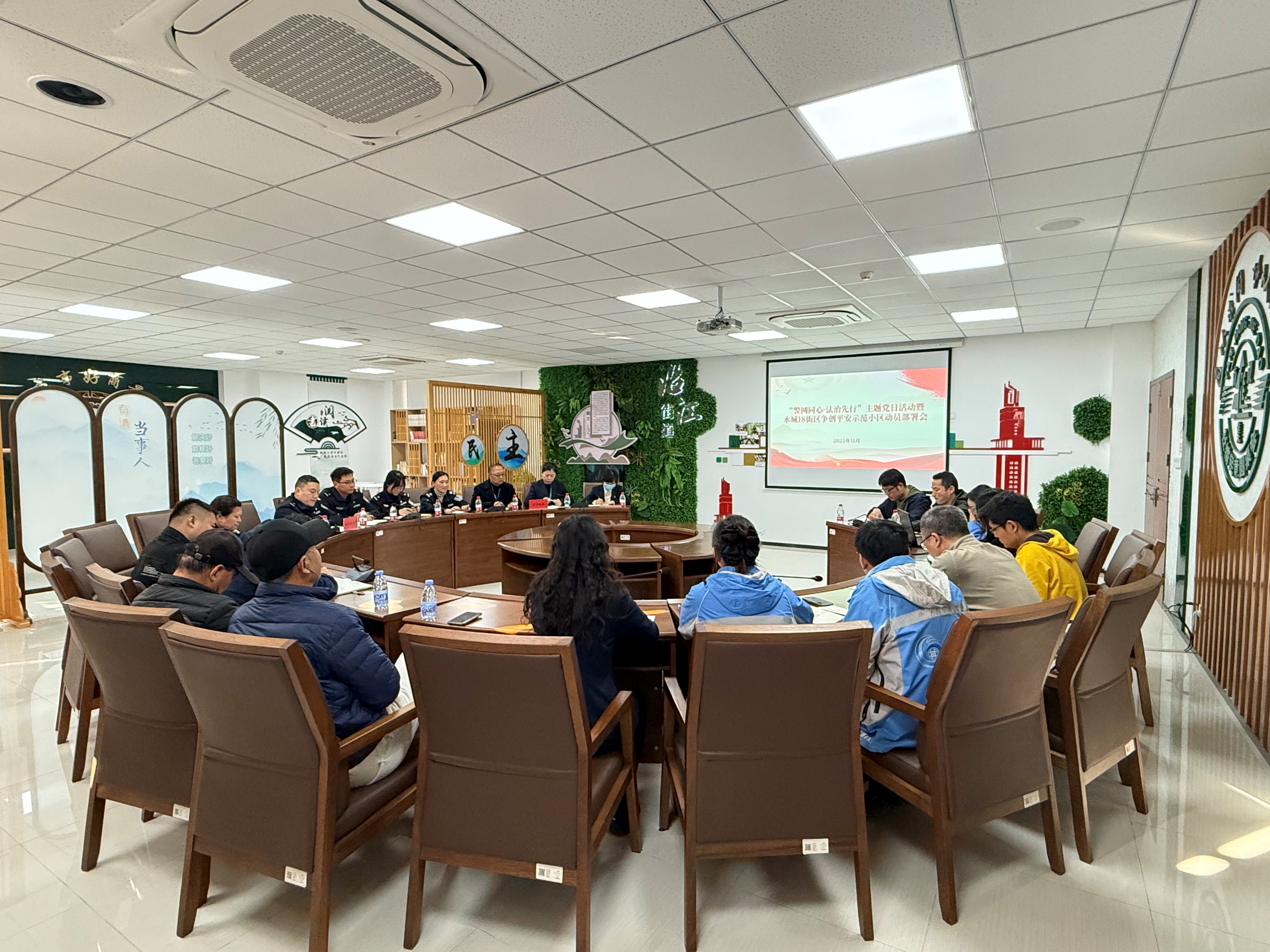 近日,“警网同心・法治先行”主题党日活动暨水城18街区争创平安示范小区动员部署会在南京沿江街道水城社区一楼协商议事厅如期举行。社区党委、沿江派出所党支部、苏宁物业党支部相关人员围坐一堂,以书记领学铸思想、法治宣讲明路径、难题共商寻对策的务实行动,正式拉开平安示范小区创建的序幕。