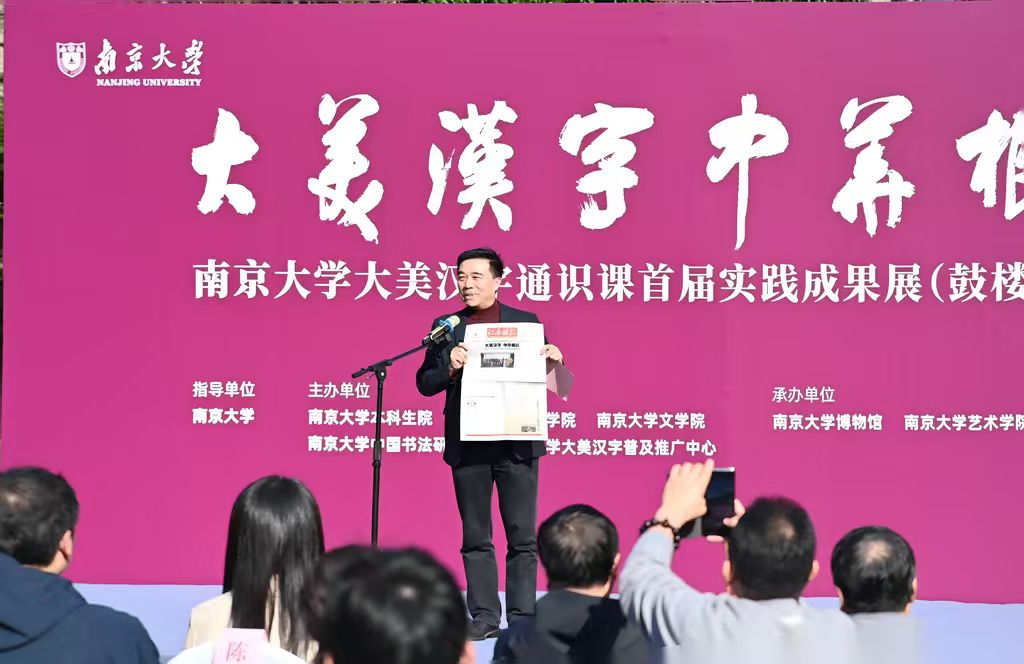陈云松在致辞中指出,汉字承载着中华文明的智慧结晶,凝聚着中华民族的精神标识。党的二十届四中全会作出了“激发全民族文化创新创造活力,繁荣发展社会主义文化”的重大战略部署,将文化建设置于强国建设、民族复兴的突出位置。他介绍,南京大学自2024年秋季开设“大美汉字”通识课,由中国书法家协会主席孙晓云教授领衔,融合文字学、书法美学与文化传承,已覆盖三校区六百余名学子,成为学校文化育人的重要载体。传承弘扬以汉字为代表的中华优秀传统文化,不仅是赓续历史文脉的必然要求,更是构筑中华民族现代文明、增强民族凝聚力的时代课题。