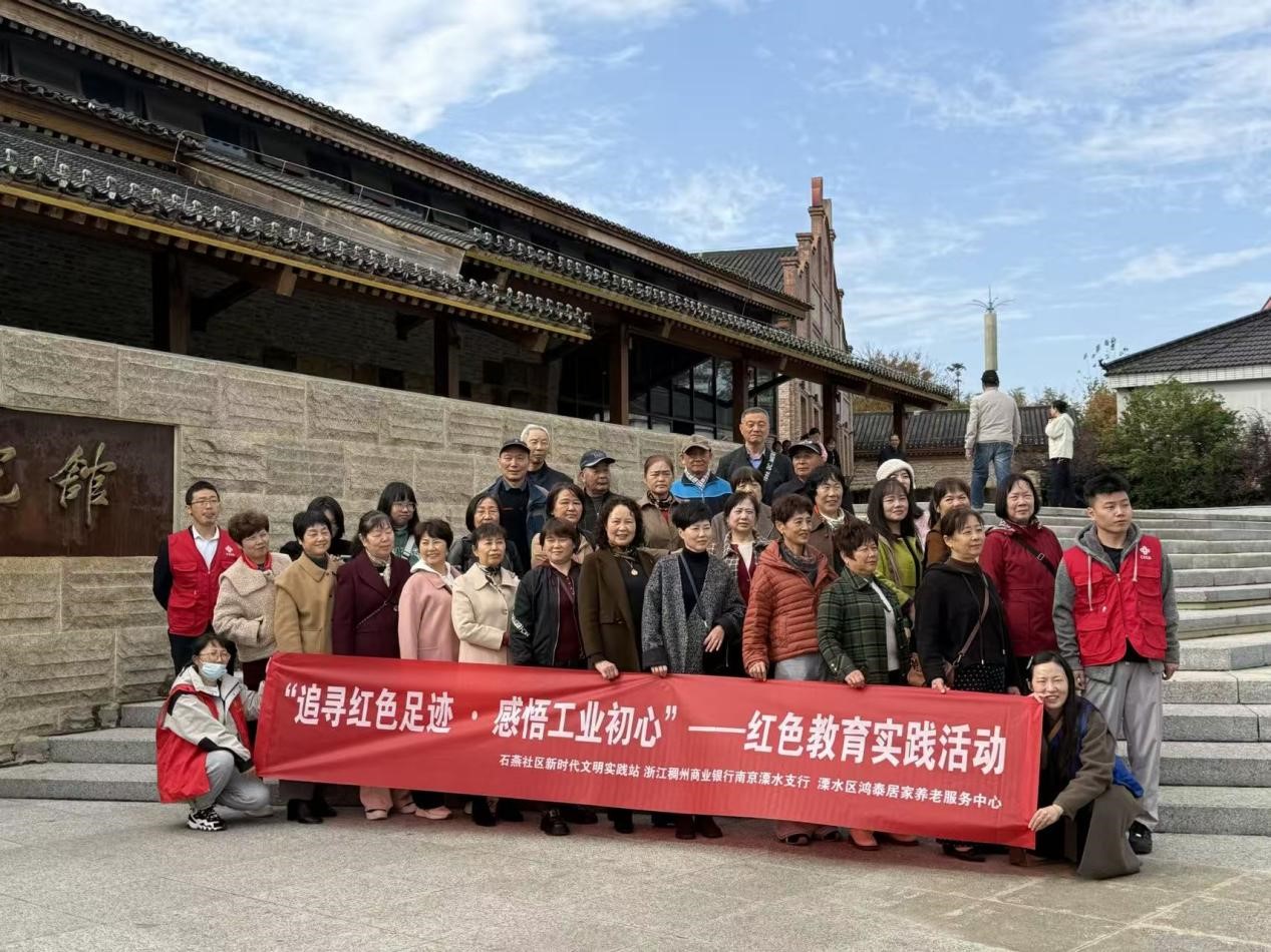 为传承红色基因,厚植爱国情怀,丰富社区老年群体精神文化生活,近日,溧水永阳街道石燕社区新时代文明实践站携手浙江稠州商业银行南京溧水支行、溧水区鸿泰居家养老服务中心,共同组织开展“追寻红色足迹・感悟工业初心”白马红色李巷参观活动。社区老年居民、志愿者及银行工作人员等40余人共同参与,在行走中回望革命历史,在感悟中汲取奋进力量。