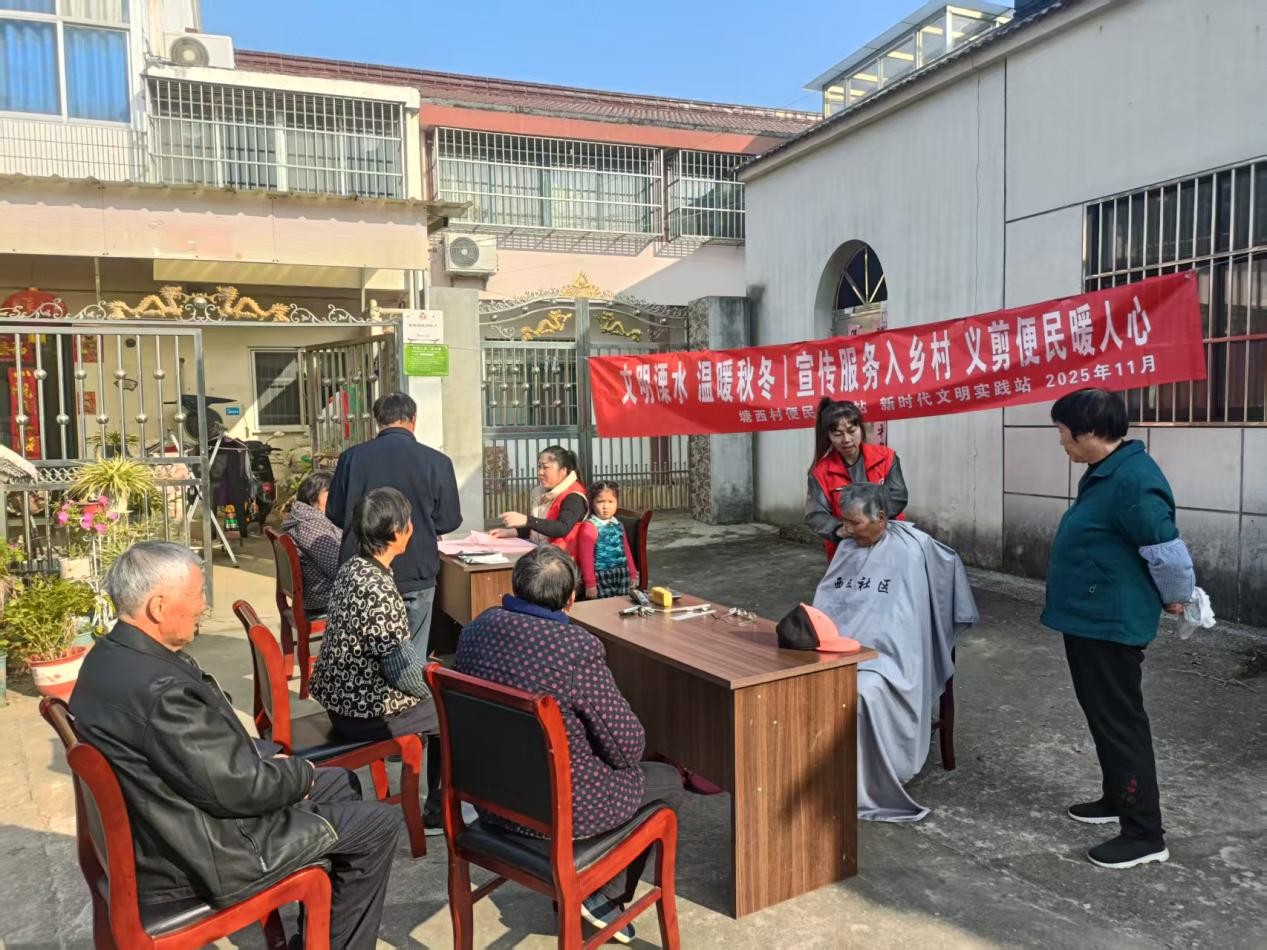 江南时报讯 初冬寒意渐浓,南京市溧水区洪蓝街道塘西村旧坊甸自然村的村民活动室前却暖意融融、热闹非凡。11月15日,为响应群众需求、提升民生服务质效,塘西村便民服务站联合新时代文明实践站创新推出便民“集市”,将政策宣传、义务理发、现场帮办等贴心服务送到村民身边,让寒冬里的温暖持续传递。