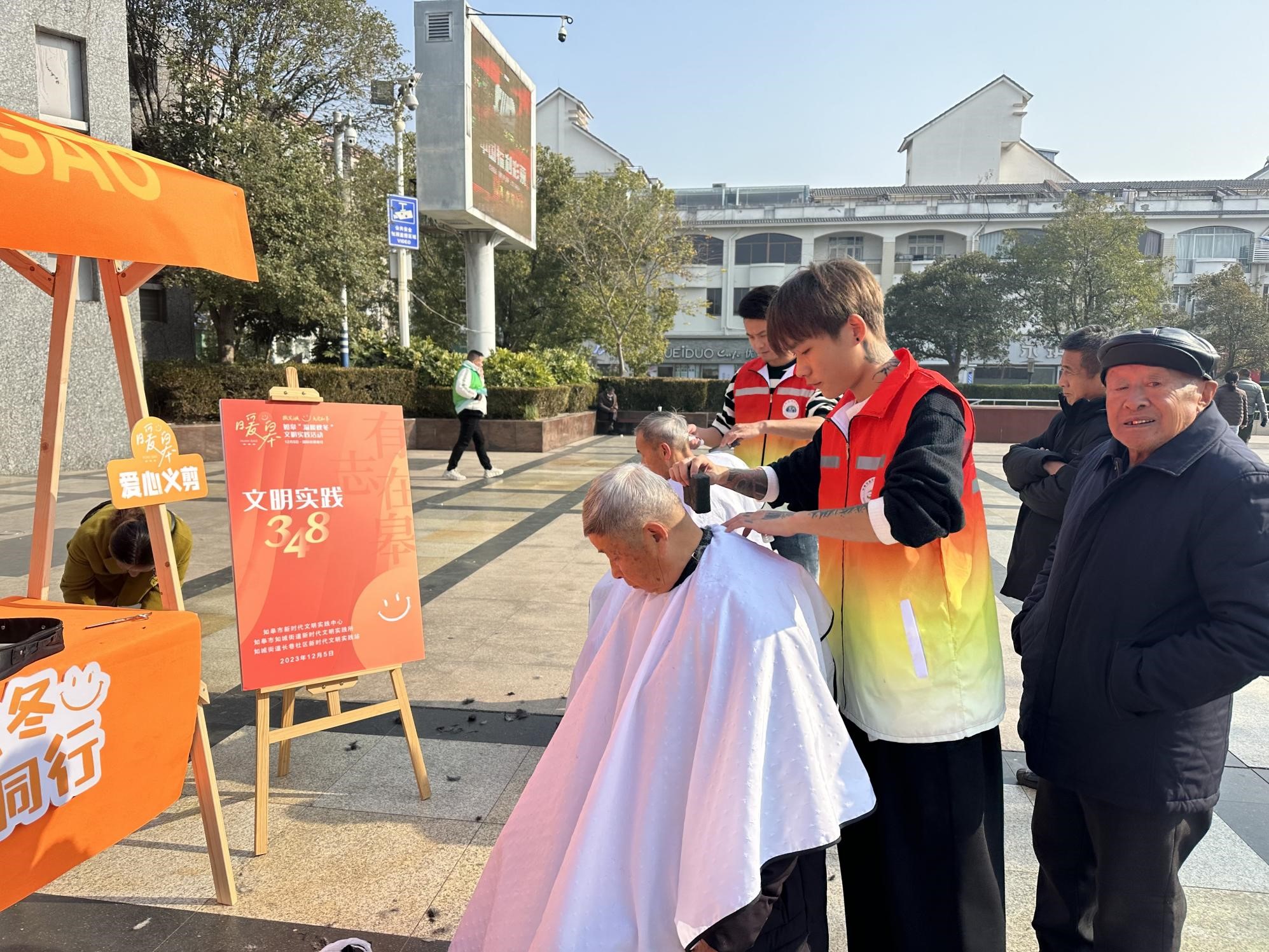如皋市文明实践中心、如城街道新时代文明实践所、如城街道长巷社区新时代文明实践站、如皋市城管、公安、卫健委等聚集安定广场。联合设置暖心豆浆、爱心义剪、义诊、急救知识普及、普法宣传、非遗展示等志愿服务摊位,吸引了众多群众驻足参与。志愿者们热情周到、耐心细致的服务得到了群众的一致好评。