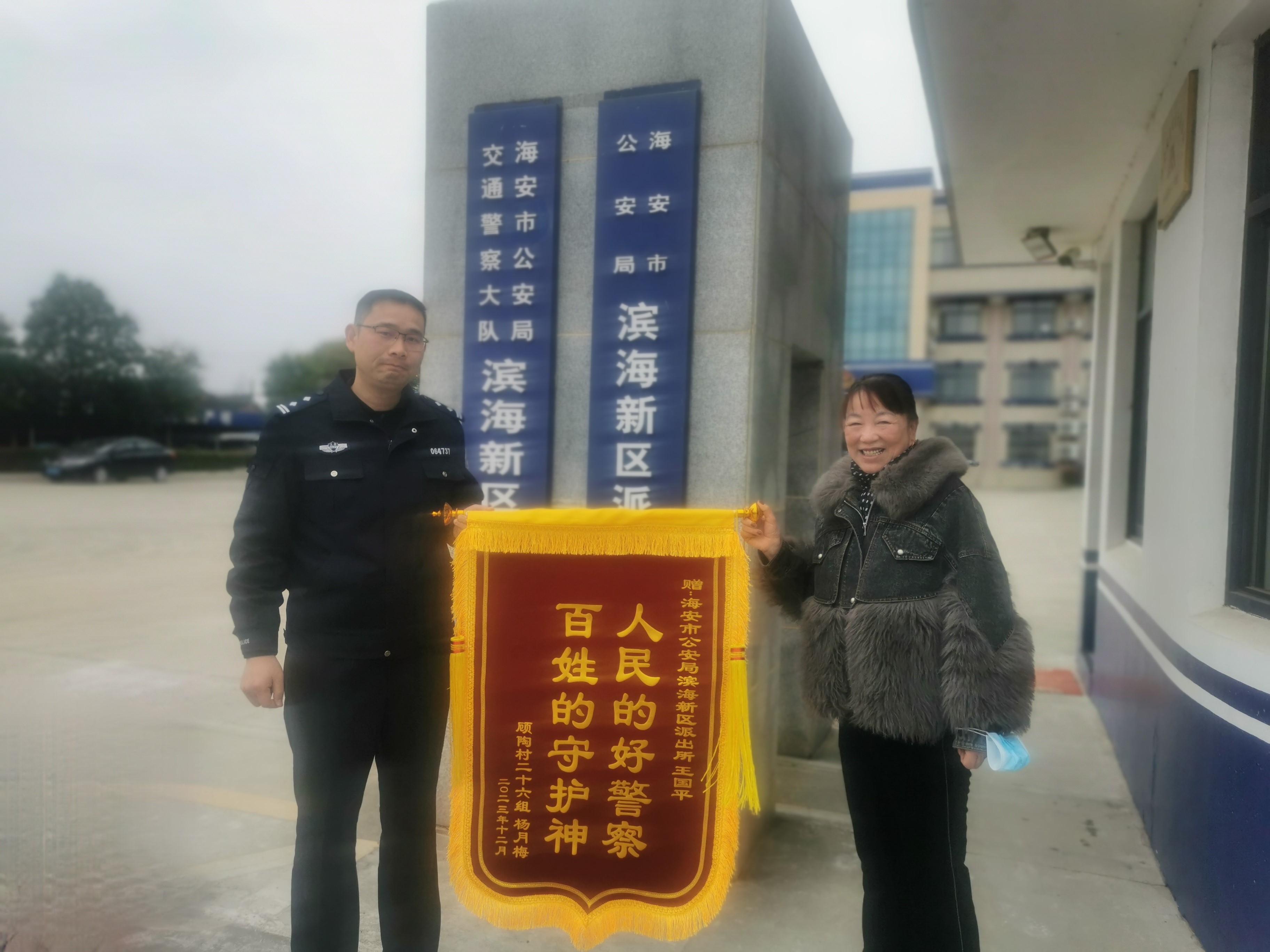 12月12日下午,一位女士来到滨海新区派出所,将一面“人民好警察 百姓守护神”的锦旗交到了民警王国平手中,感谢他在自己危难之际挺身而出、及时援助。