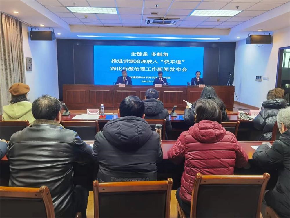 江南时报讯 12月15日,南通开发区法院召开“全链条多触角,推进诉源治理驶入‘快车道’”深化诉源治理工作新闻发布会。该院党组成员、政治部主任侯敬华出席发布会。