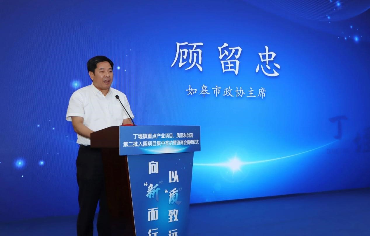 丁堰镇党委书记刘小冬致欢迎辞。他表示,作为如皋乃至南通的工业重镇,丁堰镇始终把工业强镇作为发展之路,顺应智能化、绿色化趋势,特色产业集群蓬勃发展,形成以智能家居、高端新材料、智能制造为主导的新格局,经济领跑全市。产业园区建设成效显著,智能制造产业园与凤凰科创园双轮驱动,以完善的产业配套设施吸引企业高度集聚,助力科创型企业成长。同时,丁堰镇党委、政府始终秉持“亲商、重商”原则,打造优质营商环境,为投资者提供全方位服务,让丁堰成为创业热土与宜居家园。