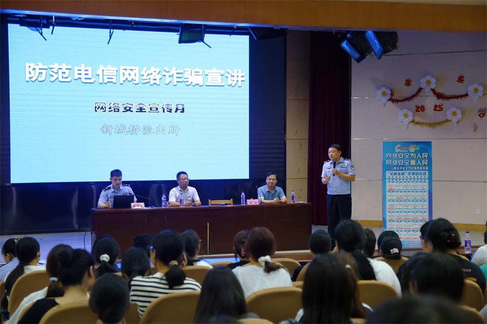 江南时报讯 9月16日下午,南通师范高等专科学校报告厅内热闹非凡,由新城桥派出所联合街道网络安全监管部门举办的“网络安全宣传周”法治宣讲活动在此举行,300余名大一新生参加。