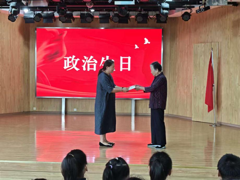 机关幼儿园党支部书记王祖霞为当月过“政治生日”的党员逐一颁发贺卡,社区党员同步主动缴纳党费,强化党员身份意识与责任意识。