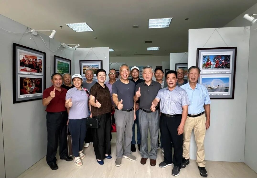 活动伊始,老同志们共同参观位于三楼的摄影展。展览以“银发光影聚焦新时代,文化养老生活更出彩”为主题,展出的作品内容涵盖海门城市新貌、市井生活片段以及会员采风纪实,生动反映了区域发展变化与老干部的创作热情。老同志们驻足观看、交流心得,现场氛围融洽。