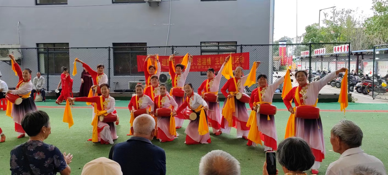 紧随其后的文艺汇演环节,活动现场的气氛和谐又温馨。老同志们纷纷登台,一展风采。演出节目精彩纷呈,形式多样,既有深情激昂的大合唱《没有共产党就没有新中国》《歌唱祖国》,唱出了对党和国家的无限热爱与祝福;也有韵味十足的戏曲联唱、轻盈优美的舞蹈表演,展现了老年人健康乐观、老有所乐的精神风貌;还有声情并茂的诗朗诵《重阳颂》、《我的祖国》,抒发了对传统佳节的赞美和对伟大祖国的深情,一曲《盛世中华》腰鼓舞把文艺展演活动推向了高潮。