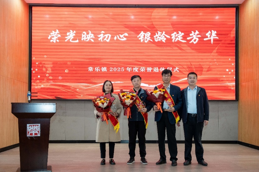 活动现场,镇党委书记王洪新为3名荣退干部佩戴绶带、颁发纪念奖牌、并赠送鲜花。绶带飘扬映初心,奖牌熠熠载荣光,鲜花芬芳寄深情,此次庄重而温馨的仪式,既是对退休干部为常乐发展所作贡献的崇高致敬,更是激励其永葆政治本色、继续发挥余热的殷切期许。