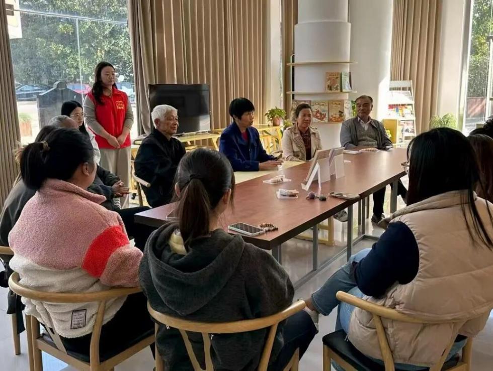 “九九重阳,‘九’为阳数,两九相重,故曰重阳。”阅读志愿者娓娓道来,从古时登高避灾、插茱萸驱邪的传统,讲到如今尊亲敬老、阖家团聚的新风;从王维“遥知兄弟登高处,遍插茱萸少一人”的思乡之情,阐释到重阳糕“步步登高”的美好寓意;就连香囊中艾叶、丁香等草药的养生妙用,也一一细细说明。柔和的讲述中,那些散落在诗句与典籍中的习俗渐渐鲜活起来,大家静静聆听,在秋意渐浓的乡土间,重拾属于重阳的独特文化记忆。