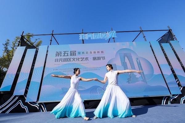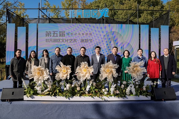 爵士乐队live现场,浪漫无限的音乐会在桃花岛上演,为初冬季节带来浓厚的文艺气息。为了展现园区丰富的文化和旅游资源,活动现场还设置了桃花市集、公共艺术作品展等精彩多元的文旅体验项目。桃花树下的桃花集,汇集文创非遗、时令花卉以及桃花酥、桃花酿等美食饮品,带领游客开启一段“粉面桃花”之约。