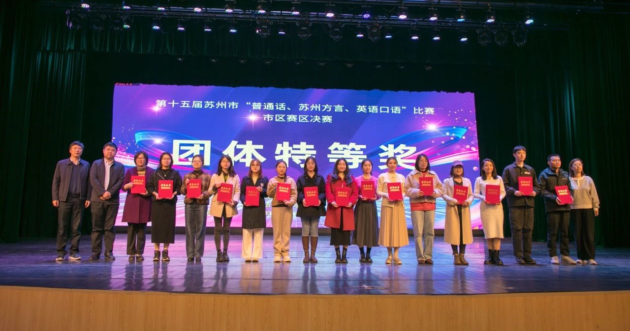 江南时报讯 近期,由苏州市教育局和苏州市语言文字工作委员会主办的“讴歌新时代奋进新征程”第十五届苏州市“普通话、苏州方言、英语口语”比赛(简称“三话”比赛)市区赛区决赛在苏州市妇女儿童活动中心圆满落幕。来自市直属、吴中区、相城区、姑苏区、工业园区、高新区的24支小学代表队同场竞技,经过激烈的角逐,吴中实验小学带来的原创作品《相信未来》荣获苏州市小学组团体特等奖!主演蔡嫣文同学荣获苏州市小学组个人二等奖!