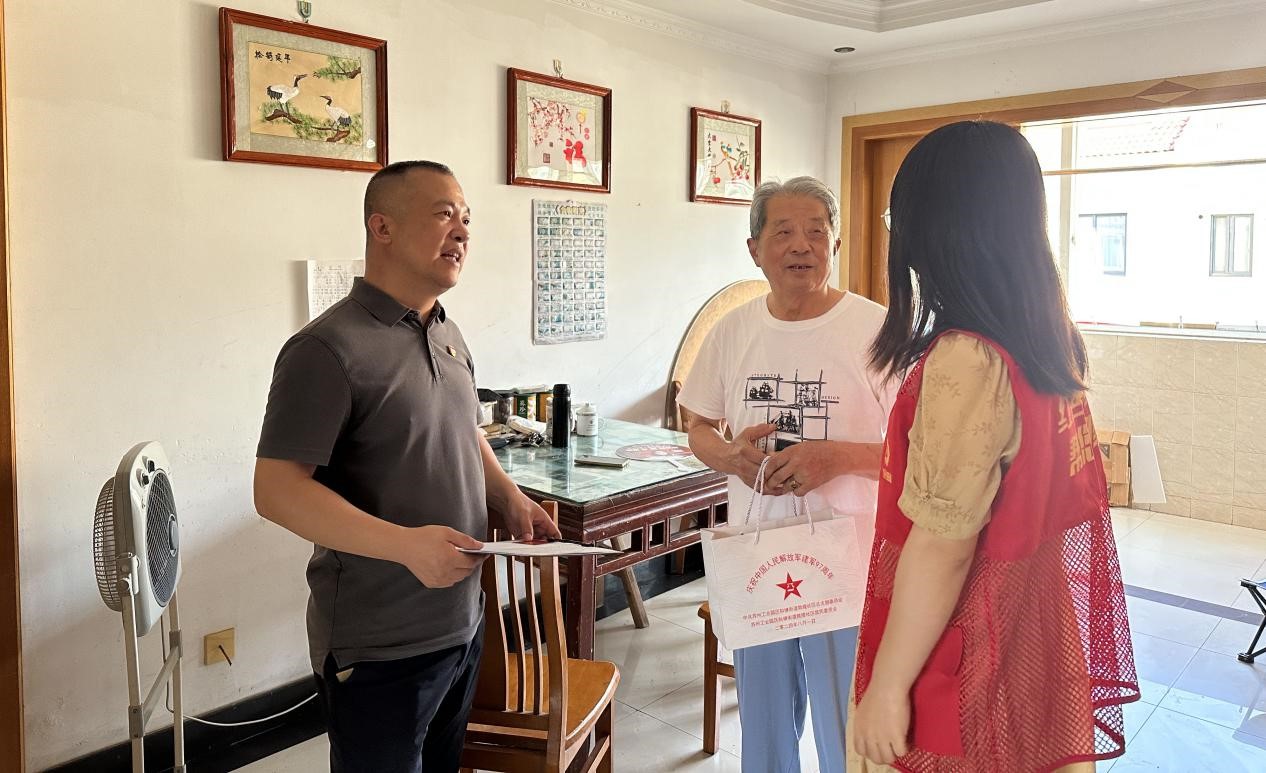 红色管家志愿者来到退役军人家中,向他们致以节日的问候和敬意,并详细询问他们的身体状况、家庭生活情况,了解他们日常生活中所遇到的困难及所想、所需、所盼,叮嘱他们注意防暑降温,在身体健康的情况下积极参与社区治理,为社区和谐发展建言献策。