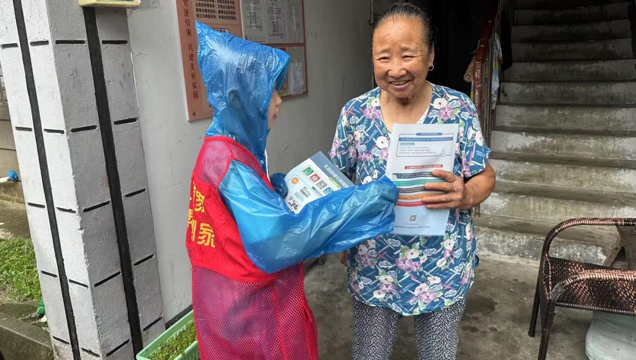 志愿者还向居民、快递小哥和商铺老板发放宣传册,就文明出行、垃圾分类知识等内容积极开展文明宣导。“您看,厨余垃圾要这样分类……”他们耐心讲解着,话语温和有力,文明的种子随着雨滴,悄悄在社区里扎下根来。