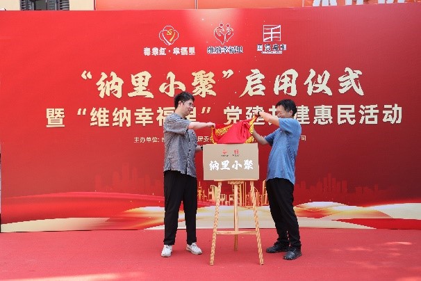 苏州国贸嘉和建筑工程有限公司代表在发言中表示,参与社区共建是企业回馈社会、践行社会责任的重要方式。公司党支部与维纳花园社区党支部现场签订了《党建共建协议》,未来将持续深化合作,探索更多惠民项目。随后,双方代表共同为“纳里小聚”揭牌,标志着社区共建共治共享迈入新阶段。