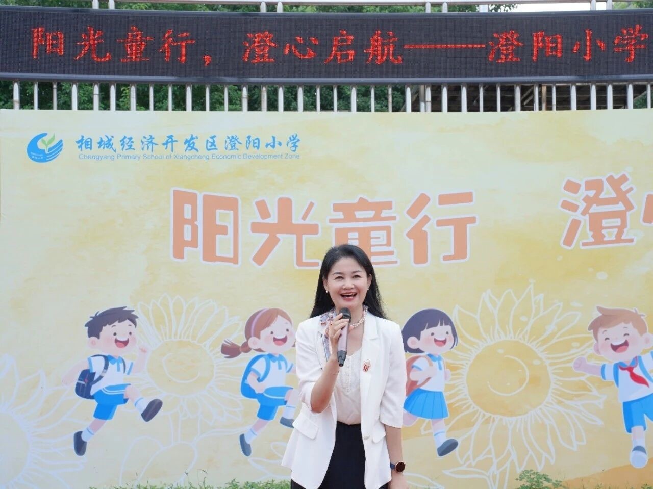 仪式伊始,欢快的旋律《生长吧》便点燃了全场的气氛。冯美虹副校长亲切致辞,她温暖的话语满载着对“小太阳”们的热烈欢迎与美好期许,鼓励他们在澄阳的大家庭里快乐学习,闪闪发光。