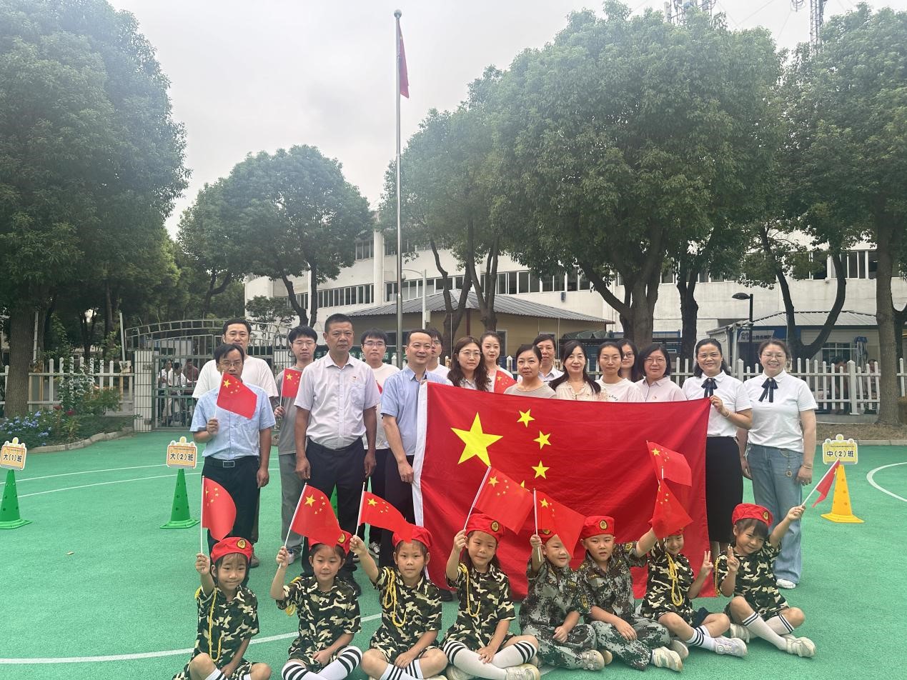 社区工作人员积极参与莲花幼儿园的升国旗仪式,与幼儿园师生一同见证这庄严的时刻。伴随着雄壮的《义勇军进行曲》,五星红旗冉冉升起,全体人员肃立行注目礼,爱国之情在每个人心中激荡。