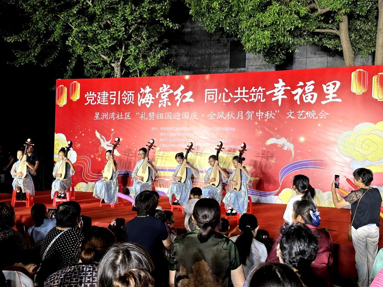 江南时报讯 金秋送爽,双节同辉。在中华人民共和国成立76周年与中秋佳节来临之际,为充分发挥党建引领作用,进一步增强辖区民众的凝聚力和向心力,营造邻里和谐的良好氛围,苏州工业园区斜塘街道星洲湾社区联合蝴蝶湾小区物管会、物业公司精心举办一场“礼赞祖国迎国庆·金风秋月贺中秋”文艺晚会,在月色中共叙家国团圆情,用最真挚的热情为双节献礼。