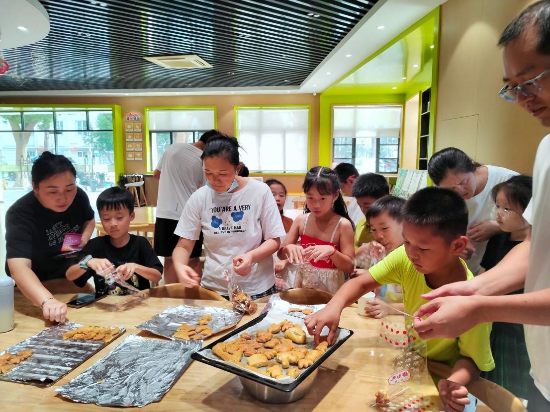 而在“童趣蛋黄酥制作”活动中,社区工作人员提前准备了适合儿童的趣味灯谜,还邀请有烘焙经验的居民担任志愿者。10岁的李同学揉着面团,身旁的张奶奶不时地帮着。当热乎乎的蛋黄酥出炉,孩子们第一时间把自己做的蛋黄酥分给在场的老人,小小的月饼成了连接“一老一小”的暖心纽带。