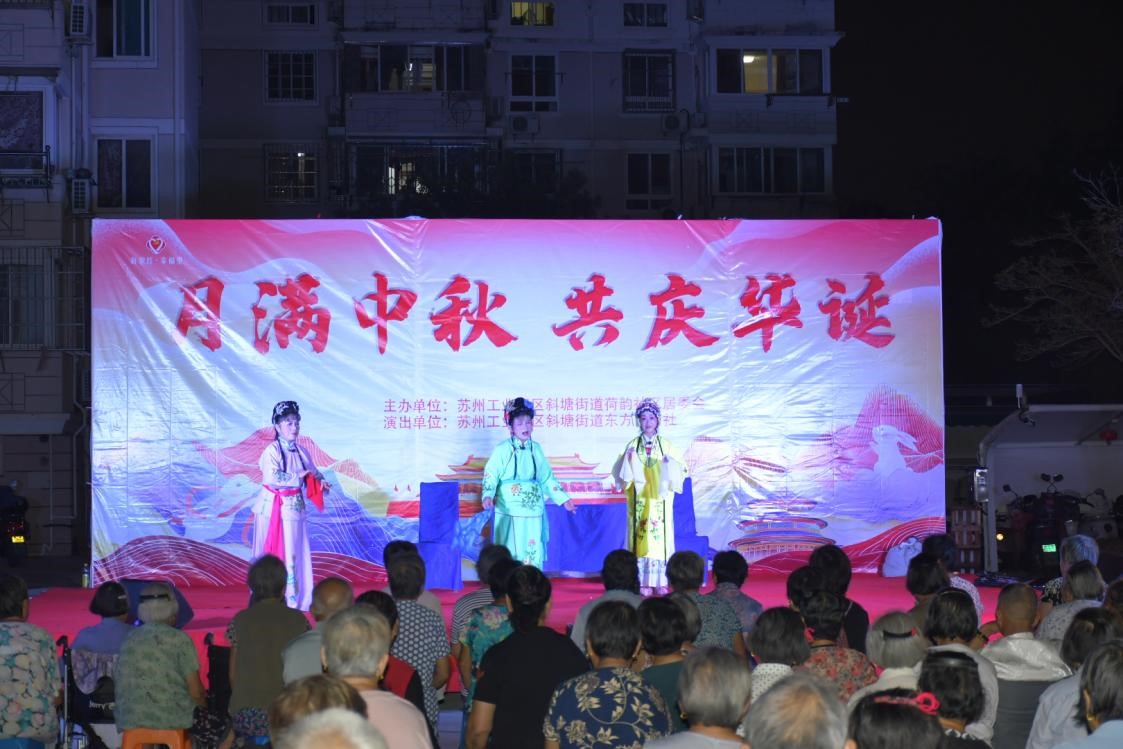 舞台上,评弹《安全意识高,生活更美好》用软糯的吴语普及居家安全知识,台下老人听得频频点头;广场舞队的阿姨身着统一服装,舞步整齐有力,引得观众阵阵掌声;锡剧《玉蜻蜓》连演7场更是勾起老年居民的回忆,不少人跟着旋律轻轻哼唱。“以前听锡剧要去剧场,现在在家门口就能看,社区想得太周到了!” 看完演出的赵爷爷笑着说,“和老邻居一起看戏、聊天,比啥都开心。”